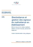 | Titre : | Bientraitance et gestion des signaux de maltraitance en établissement : Mise en œuvre en milieu sanitaire, médico-social et social, personnes majeures. Guide d’amélioration des pratiques |